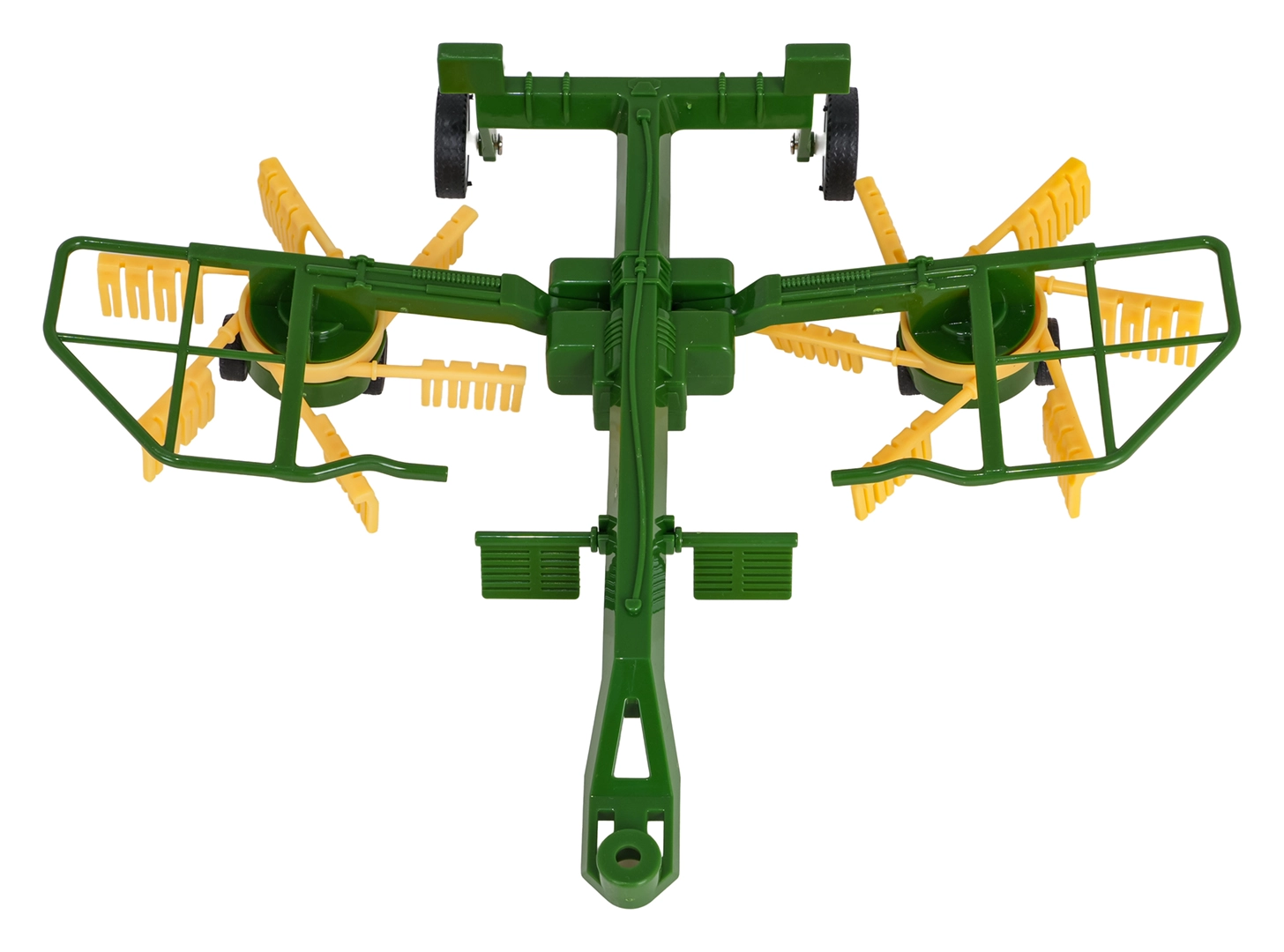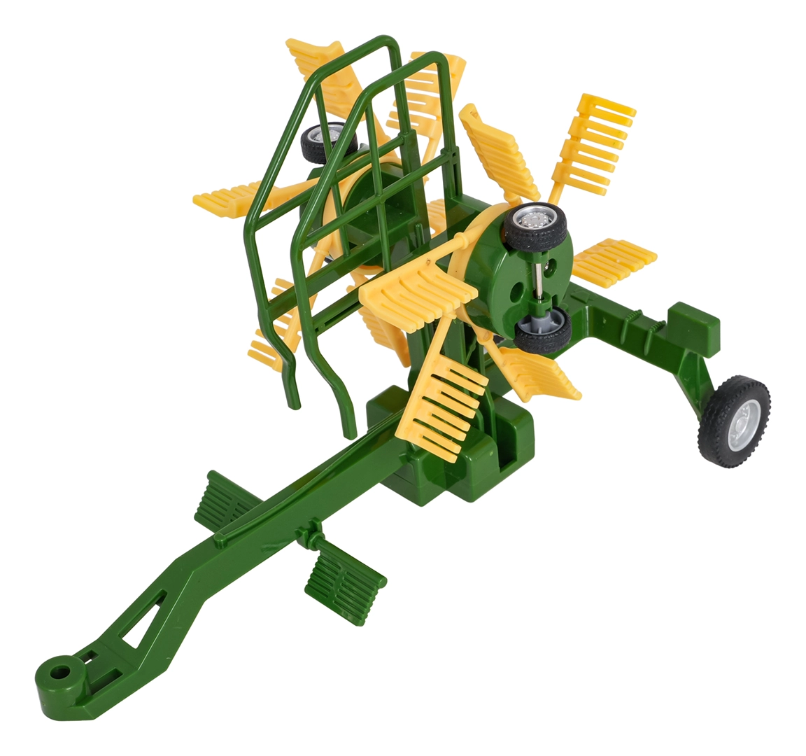 De hooihark kun je eenvoudig loskoppelen, zijwaarts neerklappen en de rotoren met de hand draaien. Ideaal om boerderijwerk te oefenen en voor creatieve scenarios.