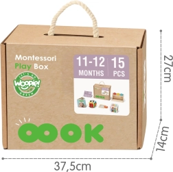 Ontdek de slimme set voor de allerkleinsten – de Montessori box 5-in-1 van WOOPIE GREEN voor de leeftijd 11–12 maanden. In de doos vind je 5 sensorische en didactische speeltjes die psycho-motorische ontwikkeling, logisch denken en oog-handcoördinatie stimuleren. Veilige materialen, natuurlijke prikkels voor zicht, tast en gehoor en een oudergids maken van deze set een ideaal cadeau voor een éénjarige.