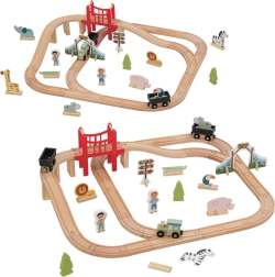 De set is ontworpen voor plezier én ontwikkeling: het leggen van rails, het hanteren van figuurtjes en het plannen van de route stimuleren creativiteit, oog-handcoördinatie en geduld. De hoogwaardige houten afwerking zorgt voor duurzaamheid en een lange levensduur; bovendien is de set compatibel met de meeste populaire houten treinbanen.
