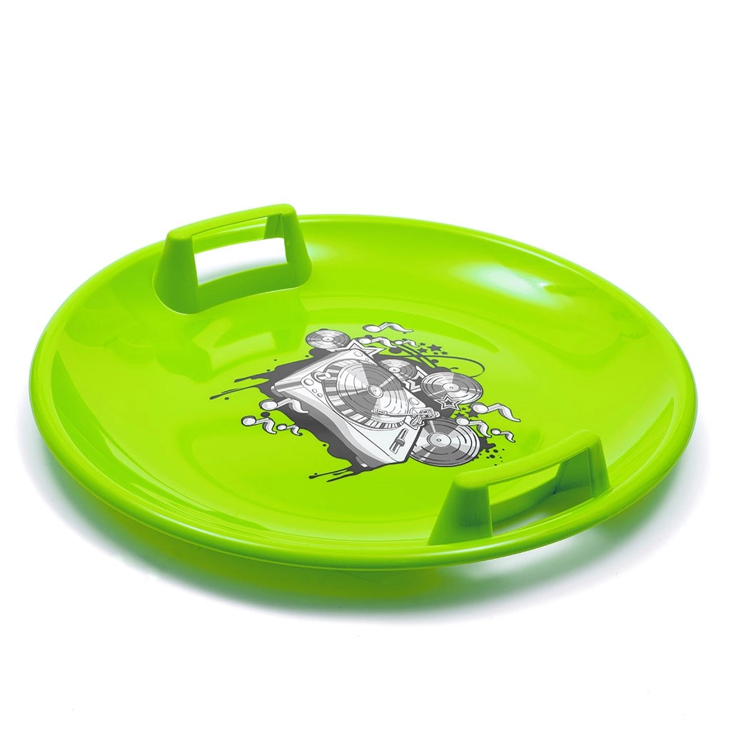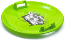 De groene BABY MIX sneeuwschijf met een diameter van 60 cm biedt snelle en leuke ritten voor kinderen en volwassenen. Gemaakt van duurzaam kunststof met vorstbestendigheid tot -20 °C, voorzien van geïntegreerde handgrepen voor veilige grip en een draagvermogen tot 50 kg. Geweldig voor heuvels en geprepareerde hellingen.