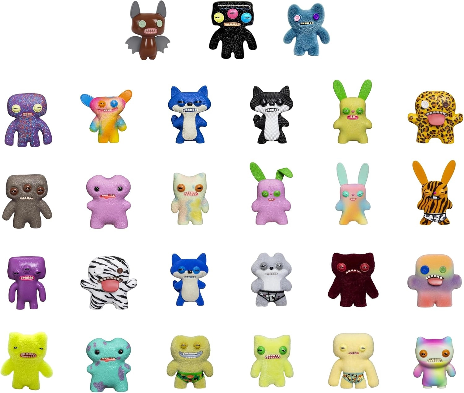 De FUGGLER-set bevat twee willekeurige figurines, elk met een eigen expressie, kleuren en texturen. Van ontblote tandjes en knopenogen tot harige of plastic oppervlakken – deze bizarre “ugly-cute” personages zijn gemaakt om te vermaken en op te vallen op je plank of bureau.