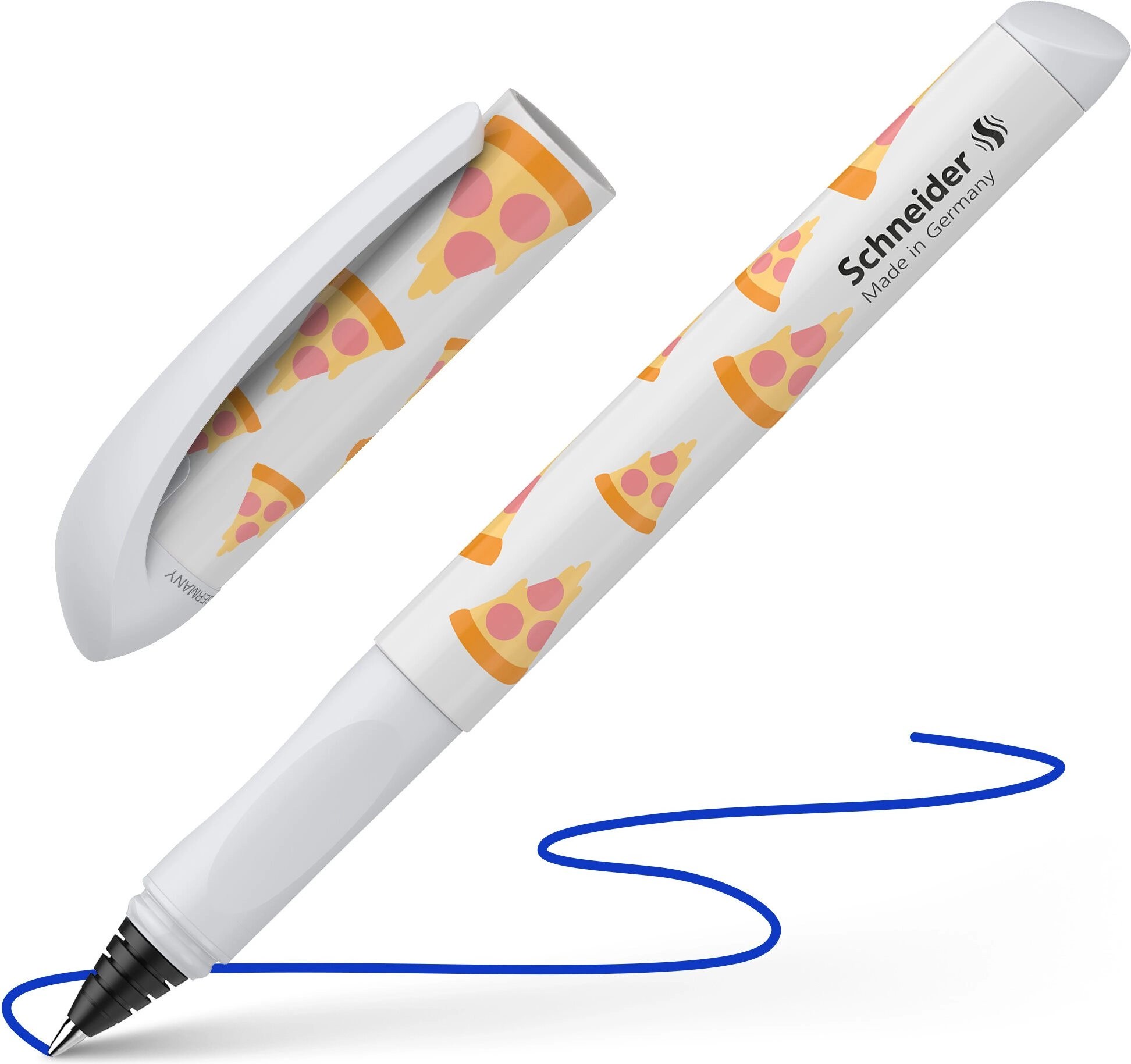 Ontdek de leuke en praktische roller voor inktpatronen Schneider Voice Pizza, die Duitse kwaliteit combineert met een speels design. Dankzij de ergonomische greep en de vloeiende inktstroom is hij ideaal voor dagelijks schrijven, aantekeningen en huiswerk.