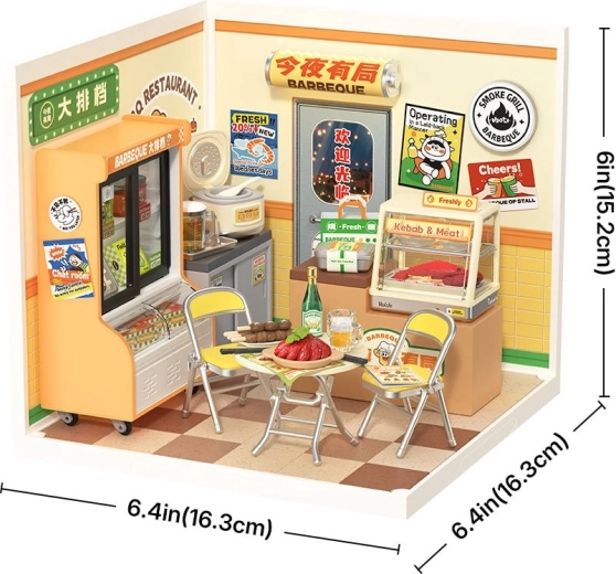Bouw je eigen miniatuur van een stadsbistro, geïnspireerd op Aziatische nachtmarkten. Dit gedetailleerde DIY-huisje van Robotime Rolife biedt 120 onderdelen, realistische inrichting en LED-verlichting voor een sfeervolle ambiance. Geniet van eenvoudige montage met een moeilijkheidsgraad 1/5 en ongeveer 1 uur bouwplezier.