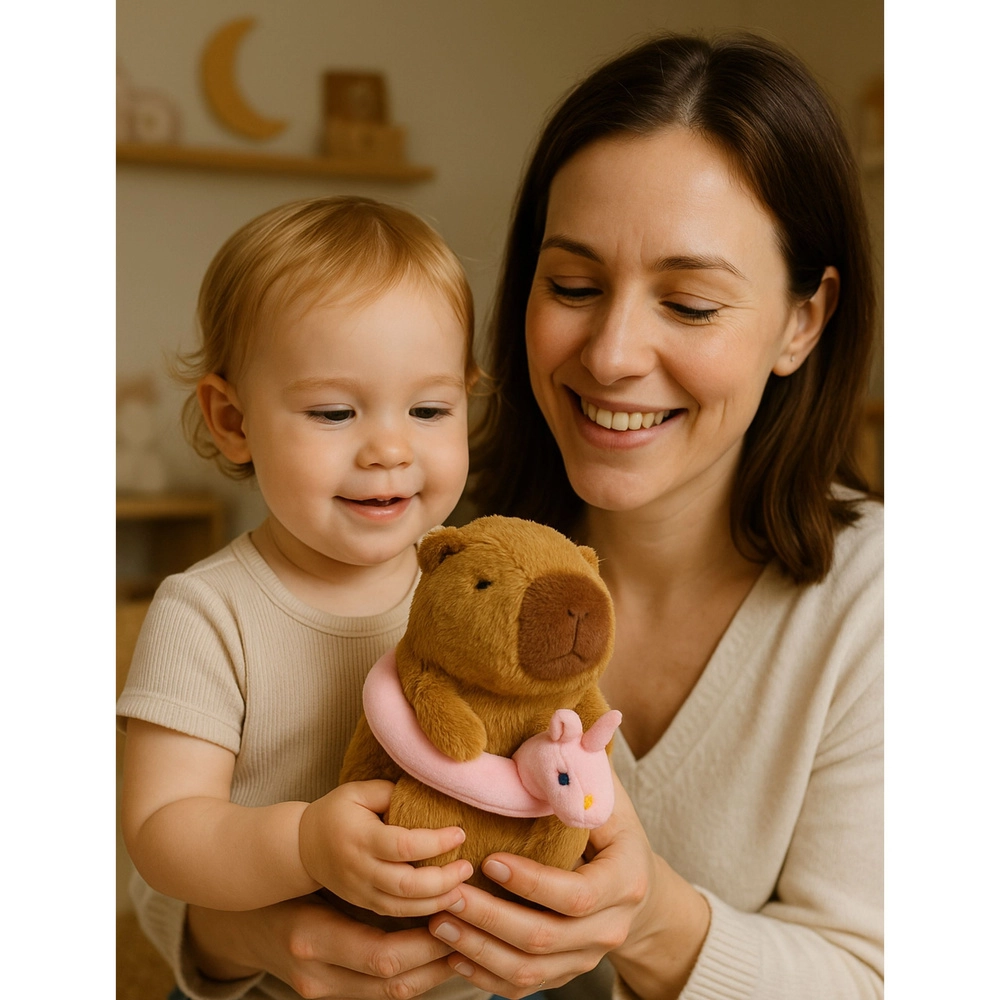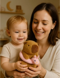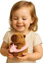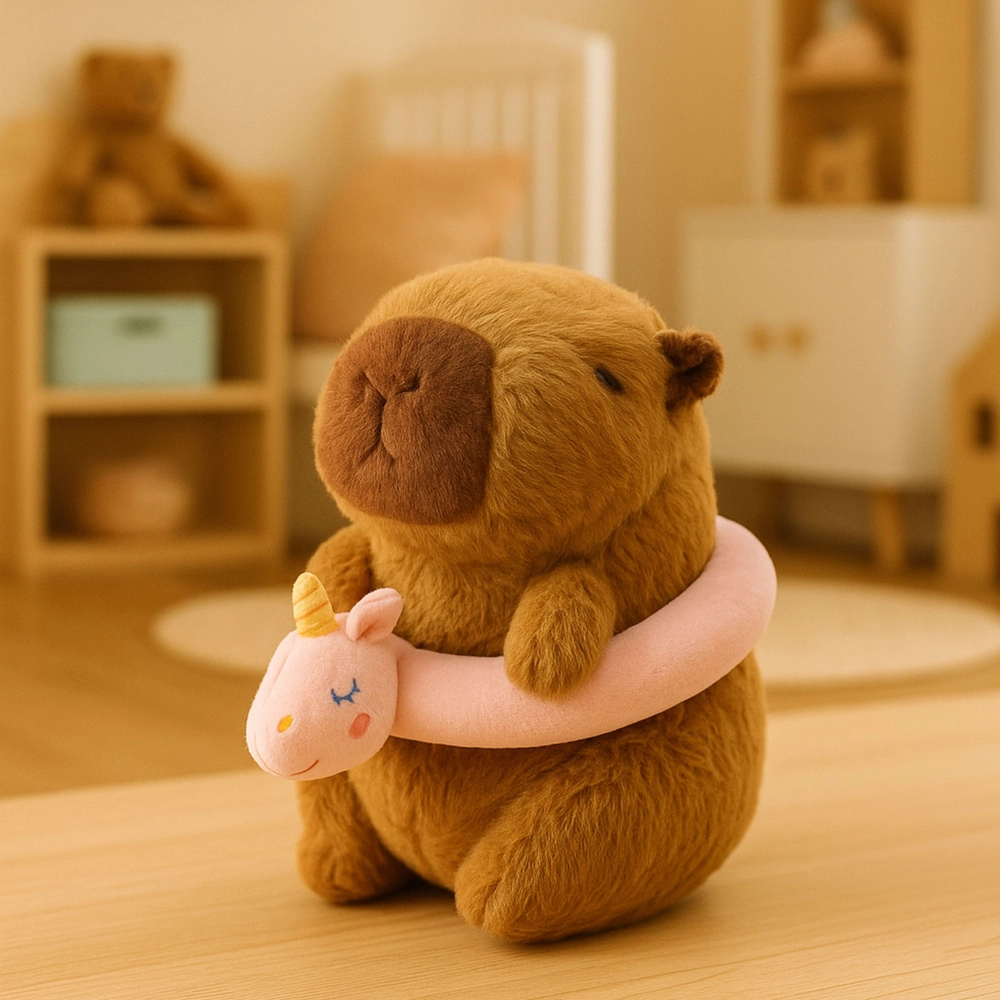 Deze pluchen capibara is gemaakt van fijne, hoogwaardige pluche die uitnodigt tot knuffelen. Hij heeft een vriendelijke uitstraling, zachte vormen en schattige details. De roze boei met eenhoorn geeft het speelgoed een unieke, sprookjesachtige touch, waardoor het opvalt als decoratie én favoriete knuffel.