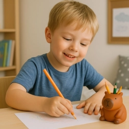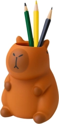 Deze decoratieve organizer in de vorm van een capibara is gemaakt van hoogwaardig decoratief materiaal met een matte afwerking en een warme bruine tint. Dankzij de afgeronde lijnen oogt hij vriendelijk en past hij perfect in zowel moderne als knusse interieurs. De opening/kolom aan de bovenkant maakt het eenvoudig om schrijfwaren, kwasten of kleine spulletjes overzichtelijk op te bergen.