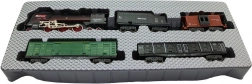De set bevat een locomotief met tender en goederenwagons, veel accessoires en in totaal 68 onderdelen om fantasie en fijne motoriek te stimuleren. Het veilige plastic ontwerp is geschikt voor kinderen vanaf 3 jaar.