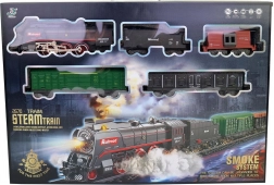 Verras kinderen met een realistische batterij-aangedreven stoomtrein met echt stoomeffect uit de schoorsteen én het onderstel, licht- en geluidseffecten, een eenvoudig te monteren baan en een grote set van 68 onderdelen met afmetingen tot 151 × 92,5 cm. Ideaal voor creatief spel en de eerste spoorwegavonturen.
