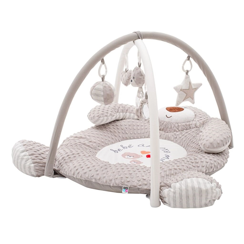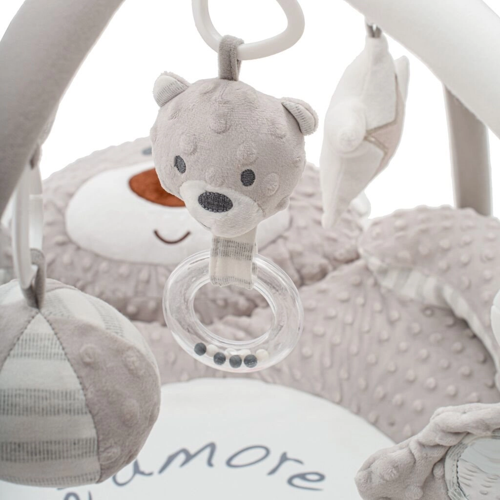 Dit luxe speelkleed van zachte minky-stof met noppen creëert een knusse en veilige omgeving voor je baby. Contrasterende patronen, diverse texturen en interactieve elementen ondersteunen de ontwikkeling van zicht, tast, coördinatie en fijne motoriek. De geïntegreerde babygym met afneembare speeltjes motiveert je kind om te reiken, vast te pakken en om te rollen.