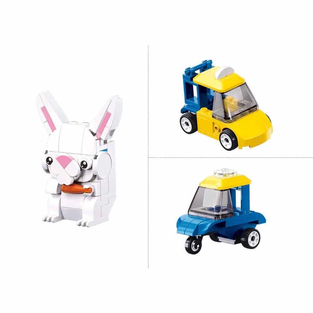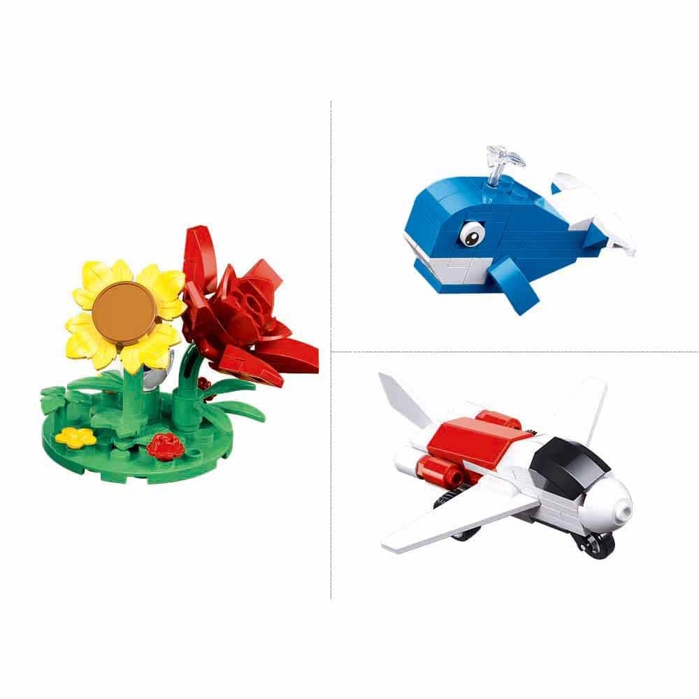 De Sluban Builder 6-in-1 bouwset brengt plezier en leren samen. Uit één set maak je meerdere verschillende modellen – van vliegtuig en voertuigen tot een konijntje, bloemen of kleine scènes. Dankzij de compatibiliteit met LEGO, COBI en Mega Bloks breid je je bouwwerken eenvoudig uit en voeg je nieuwe ideeën toe.