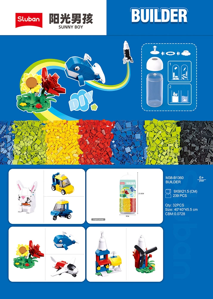 Ontdek de creatieve wereld met de Sluban Builder 6-in-1 bouwset! Met 239 stukjes bouwen kinderen vliegtuigen, voertuigen, dieren en bloemen. De set is compatibel met andere bouwsets, gemaakt van veilig ABS-kunststof en stimuleert creativiteit, verbeelding en fijne motoriek. Een praktische opbergdoos voor eenvoudig bewaren en een bouwinstructie maken deel uit van de verpakking.