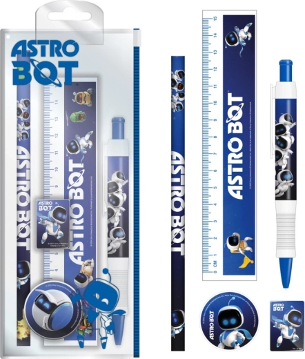 Praktische schoolsset met officiële Astrobot-licentie bevat alles wat je nodig hebt om te schrijven en te meten. In het compacte plastic etui vind je een liniaal van 15 cm, een puntenslijper, een gum, een balpen en een HB-potlood – ideaal voor school en onderweg.
