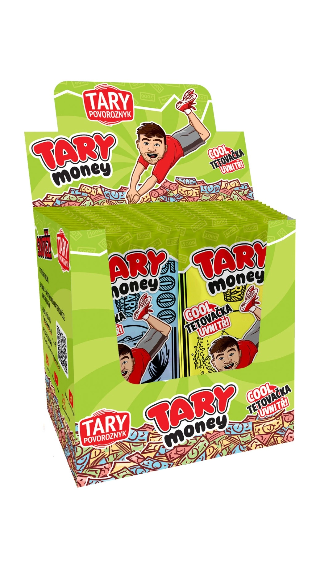 Eetbaar papier met Tary-tattoo 8 g combineert fun en zoet genot in één. Dankzij de aantrekkelijke verpakking met het opvallende TARY money-motief en twee kleurvarianten (blauw en geel) is deze snack een ideale keuze voor kleine avonturiers en jongeren die niet alleen van lekkere snoepjes houden, maar ook van een speelse verrassing.