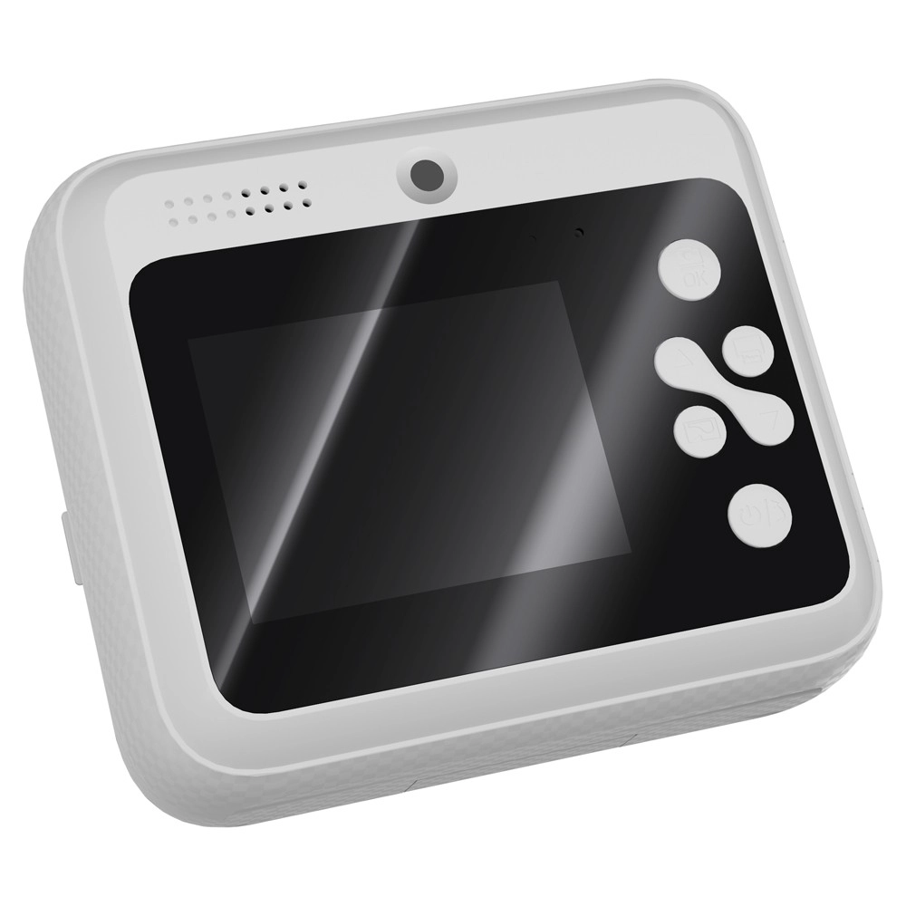 Op het 2,4" kleurendisplay bekijken kinderen eenvoudig opnamen, kiezen ze modi en passen ze instellingen aan. De selfiestand maakt zelfportretten en groepsfoto’s gemakkelijk, terwijl vier ingebouwde spelletjes voor extra plezier zorgen. Met de 1200 mAh‑batterij gaat hij tot 6 uur mee, opladen is eenvoudig via USB‑C. Het geheugen kan worden uitgebreid met een microSD‑kaart tot 32 GB en in de verpakking zitten 2 rollen thermisch papier, een polskoord en stickers.