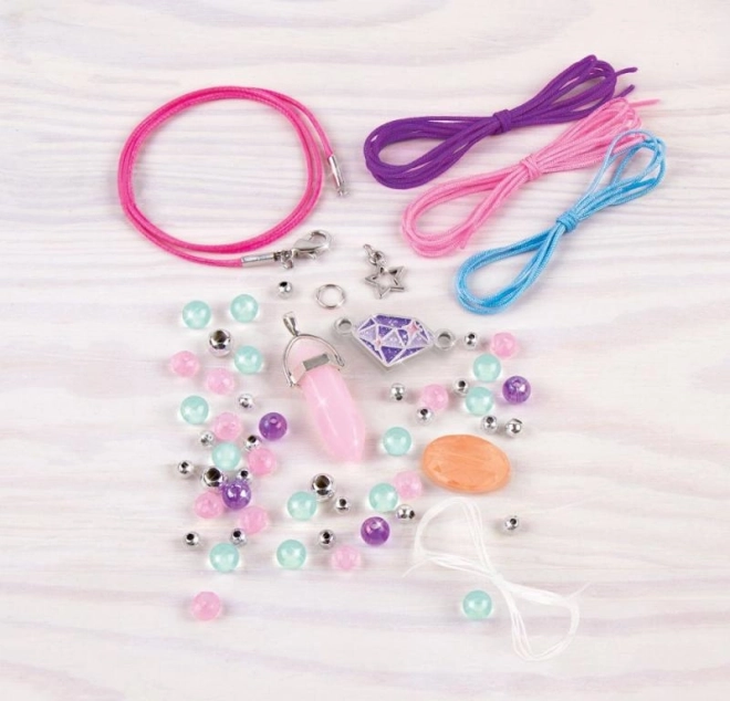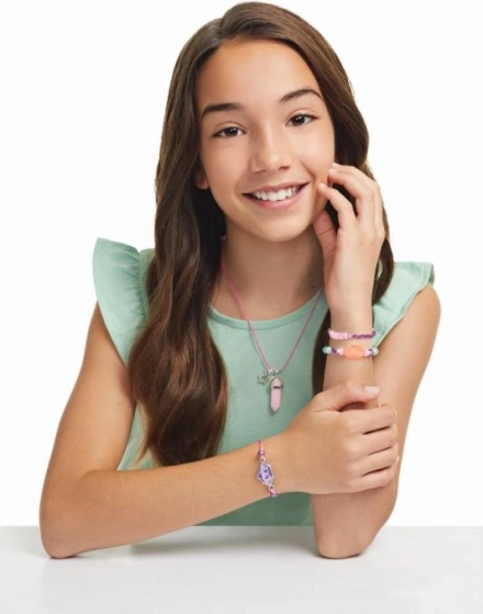 Ontwikkel de creativiteit van kinderen met een set waarmee je eenvoudig een ketting en 3 armbanden met kralen in kristalvorm maakt. In de doos zit alles wat je nodig hebt, verstelbare koordjes en zachte pasteltinten – ideaal cadeau voor kinderen vanaf 8 jaar.
