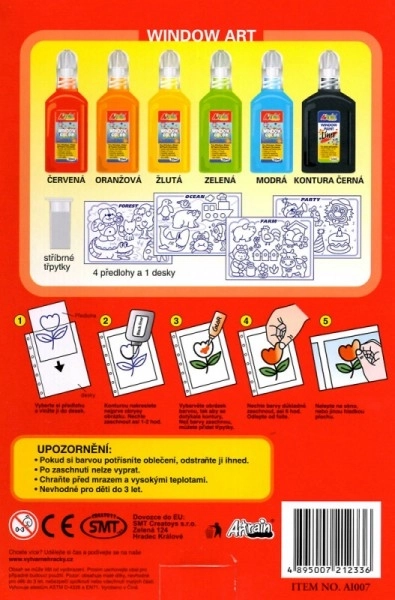 De set afpelbare raamverf is ideaal voor kinderen die graag knutselen. Kies een sjabloon, trek deze over met zwarte contourverf, kleur in met je favoriete tinten en versier met glitter. Na het drogen (ca. 6 uur) kan het motief worden afgepeld en opgeplakt op een raam, glas of kunststof.
