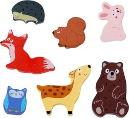 Deze kwalitatieve houten puzzel met bosdieren is ideaal voor kleine ontdekkers vanaf 18 maanden. De robuuste onderplaat en dikke stukjes in de vorm van een vos, beer, hert, uil, konijn, egel en eekhoorn zijn ontworpen om makkelijk door kleine kinderhandjes vastgepakt te worden. Kleurrijke illustraties ondersteunen het herkennen van vormen en dieren en nodigen spelenderwijs uit tot de eerste leermomenten.