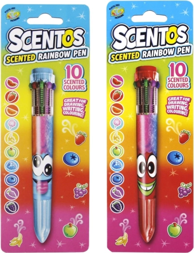 De geurige regenboogpen SCENTOS is een leuke en praktische schrijfwaren voor op school en thuis. In één behuizing biedt hij 10 heldere kleuren, die je eenvoudig kiest met de knopjes. Elke kleur heeft zijn typische fruitgeur (bijv. aardbei, banaan, appel), wat schrijven en tekenen een nieuwe zintuiglijke dimensie geeft.