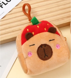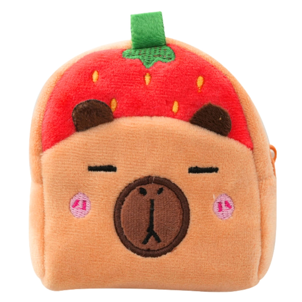 Schattige pluchen portemonnee in de vorm van een capibara met een rode aardbei, ideaal voor kinderen en liefhebbers van kawaii-accessoires. Hij is licht, zacht en prettig om aan te raken, heeft een veilig ritssluiting en een praktische kunststof clip om aan een rugzak of sleutels te bevestigen. De compacte afmetingen 9,5 × 8 cm zijn perfect voor muntjes, briefgeld, sleutels en kleine schatten.