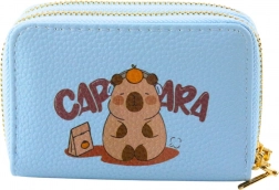 Blauwe tweekamer-portemonnee met capibara, vakken voor kaarten 12,5 × 8,5 cm