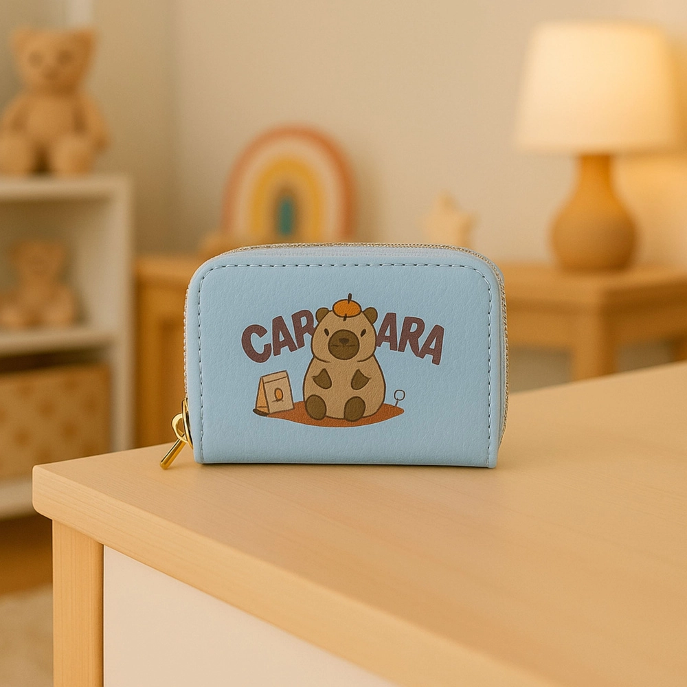 Compacte en schattige portemonnee met CAPYBARA-motief, met twee afzonderlijke ritssluitingen, harmonica-vakken voor kaarten en contant geld en een duurzaam oppervlak met lederen textuur. Ideaal voor kaarten, bankbiljetten en muntgeld in handtas, rugzak of broekzak.