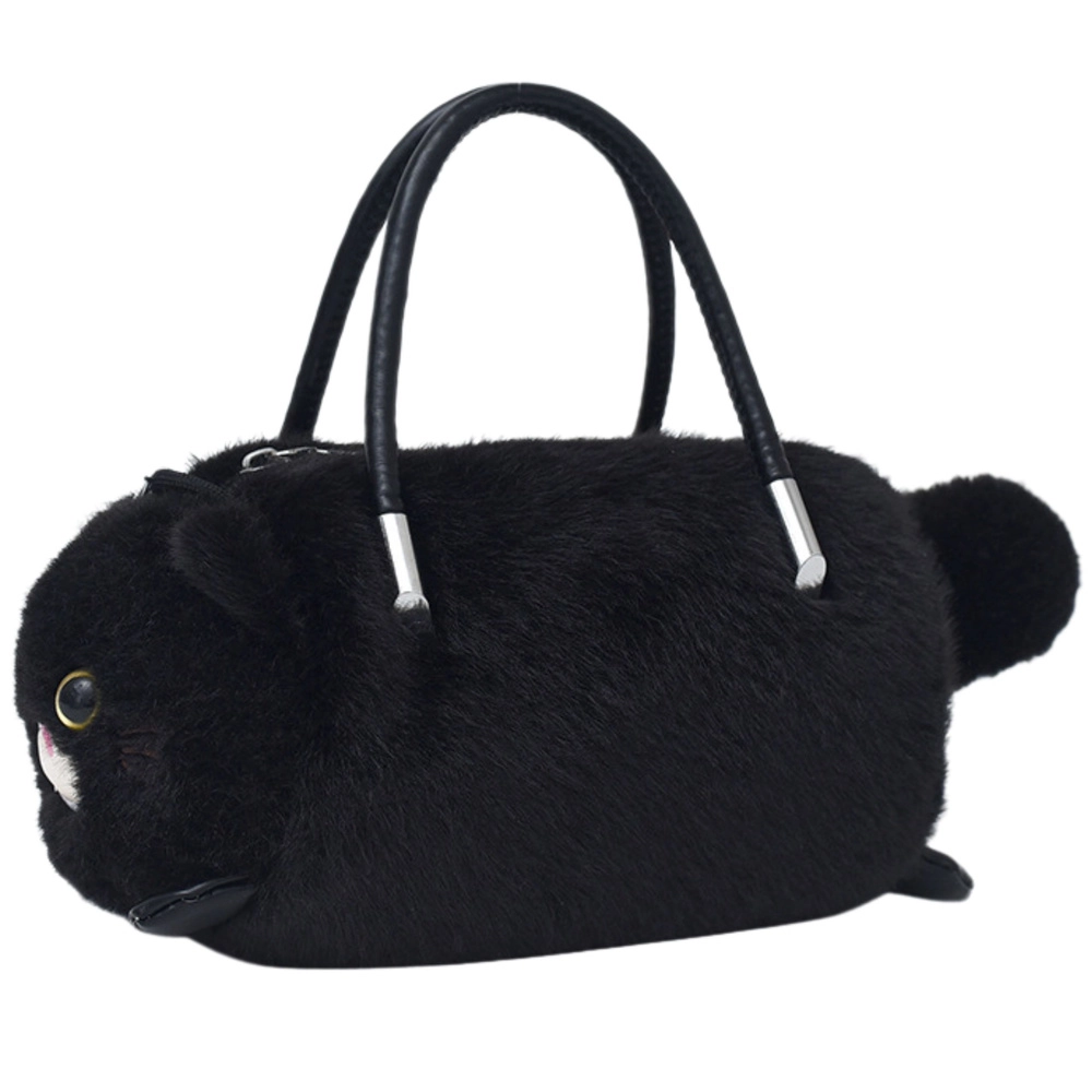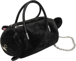 Deze zwarte pluchen handtas in de gedaante van een schattig katje betovert met haar zachte oppervlak en zorgvuldig uitgewerkte details – oortjes, oogjes en staart. Dankzij de compacte afmetingen is ze perfect voor je essentials, of je nu de stad in gaat, naar school, of als speels accent bij je casual outfits.