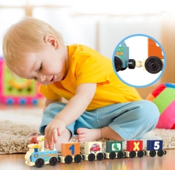 Deze educatieve trein is een uitstekende keuze voor de eerste stappen in de wereld van de alfabetten en tellen. Kinderen bouwen zelf de locomotief en wagonnetjes, plaatsen de kleurrijke blokken en kunnen ze versieren met stickers. Het spel stimuleert de verbeelding, verbetert de oog-handcoördinatie en motiveert tot ontdekken.
