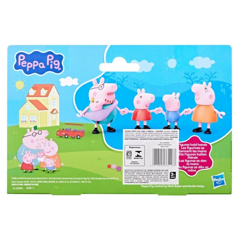 Ontdek de magie van de wereld van Peppa Pig met deze familieset met 5 beweegbare figuren van Hasbro. Kinderen kunnen favoriete scènes uit de serie naspelen of nieuwe avonturen bedenken. Inclusief een draagdoek voor baby Evie, die op mama of papa kan worden gezet, en de figuren kunnen elkaars hand vasthouden voor liefdevolle familietafereeltjes. Ideaal cadeau voor kinderen vanaf 3 jaar.