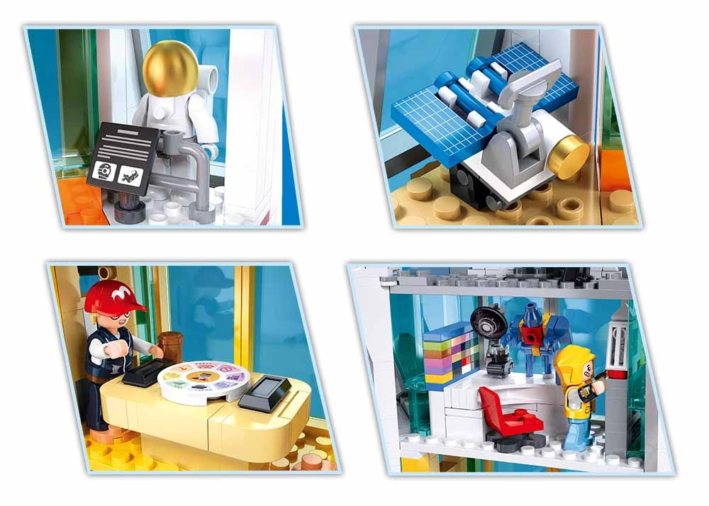 Elke verdieping biedt andere speelmogelijkheden: ruimtesimulatie, sterrenobservatie, gebouwbeheer en onderhoud. De meegeleverde minifiguren en de stads-taxi breiden je verhalen uit en zorgen voor uren speelplezier.