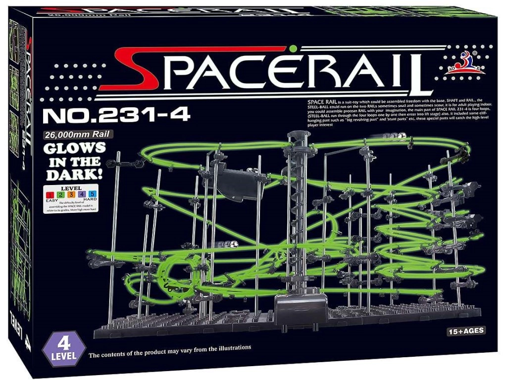 - 26 meter baan – lange en soepele ritten voor de knikkers.