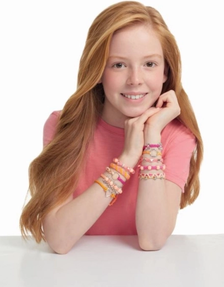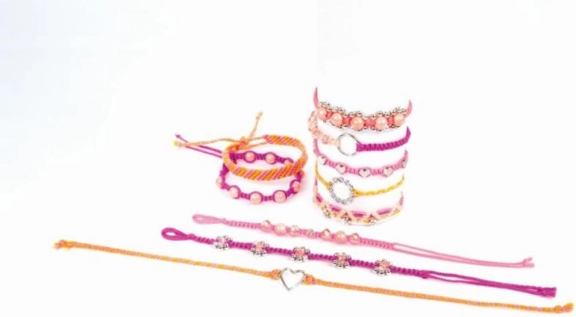 De set bevat een breed scala aan draden en kralen in levendige en trendy kleuren, waarmee unieke ontwerpen kunnen worden gemaakt.