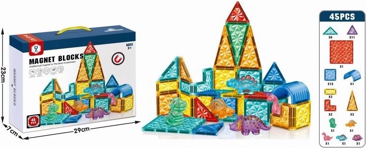 Ontdek een creatieve wereld met deze set magnetische bouwstenen met dinothema. De set bevat 45 onderdelen die dankzij sterke magneten eenvoudig aan elkaar klikken en zo fijne motoriek, logisch denken en creatief bouwen stimuleren. Ideaal voor kinderen die van dinosaurussen en fantasierijk spel houden.