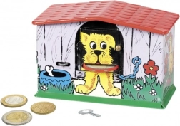 Schattige blikken spaarpot in de vorm van een hondenhok met een kleurrijke print van een hondje die kinderen motiveert om te sparen. Dankzij de praktische gleuf voor munten en de metalen uitvoering is hij veilig, duurzaam en speels stimulerend voor financiële gewoonten.