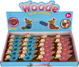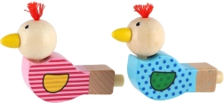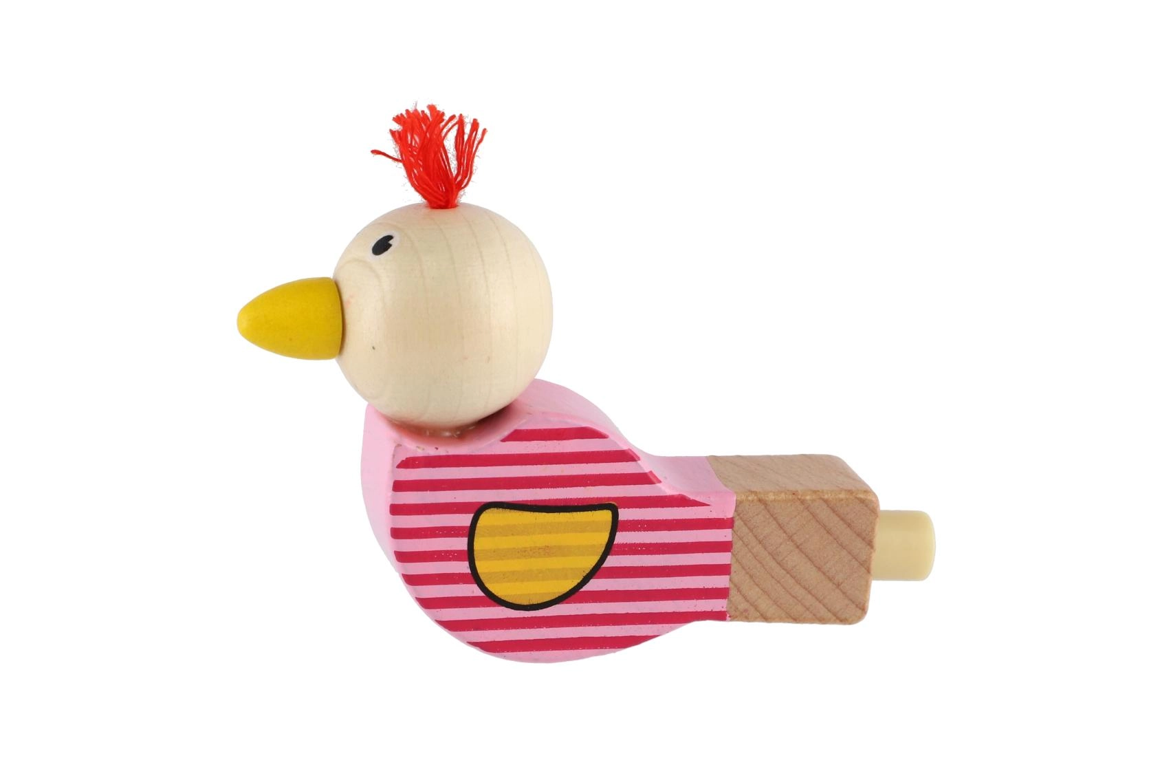 Een schattig houten fluitje in de vorm van een vogeltje bezorgt elk kind plezier. Bij het blazen geeft het een aangenaam geluid, ligt goed in kinderhanden en dankzij de hoogwaardige afwerking van duurzaam hout is het geschikt voor dagelijks spelen. Vrolijke kleuren en een klein kwastje als “kuif” geven het speelgoed een speels design.