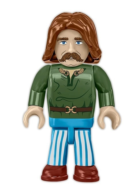 - 2 minifiguren + 2 ossen, wagen, schilden, wapens, standaard