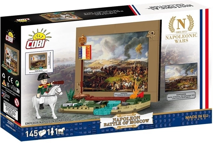 Beleef een sleutelmoment van de veldtocht naar Rusland en bouw een scène die geschiedenis, kunst en bouwplezier verenigt. De set COBI Napoleon – slag bij Moskou biedt een gedetailleerd mini-diorama met een ingelijste afbeelding van de slag bij Borodino, het iconische figuurtje van Napoleon Bonaparte te paard en een zorgvuldig vormgegeven landschap voor een effectvolle display en spel.