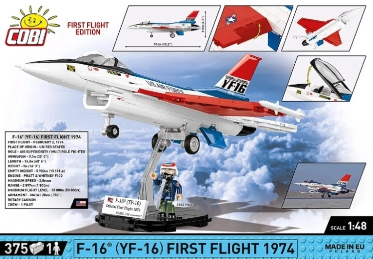 Deze gedetailleerde bouwset eert de eerste testvlucht van de YF‑16 uit 1974. Dankzij de nauwkeurige bedrukking, authentieke kleurstelling en proporties in schaal 1:48 krijg je een realistisch model dat op een plank of in een vitrine schittert. De intuïtieve handleiding zorgt voor een ontspannen bouwervaring, ook voor minder ervaren bouwers.