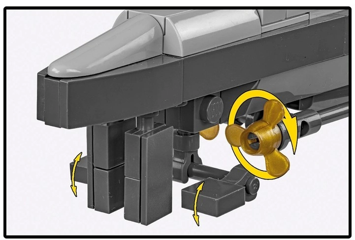 draaibare scheepsschroeven, gedetailleerde toren en dek