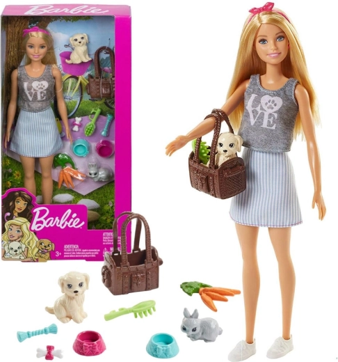 Deze betoverende set brengt alles wat kinderen nodig hebben voor verhalen over de zorg voor dieren. BARBIE heeft realistische details, beweeglijke ledematen en een moderne outfit aangevuld met witte sneakers en een roze haarband. De set bevat figuurtjes van een hondje en een konijntje en volop accessoires voor voeden en verzorgen.