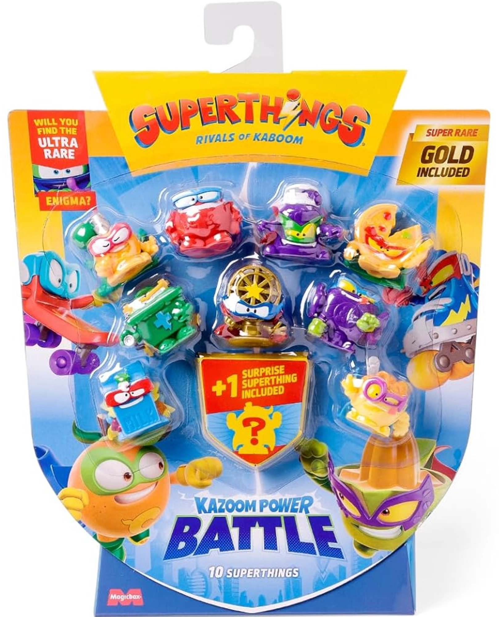 Ontdek de wereld van SuperThings met deze set met 9 figuurtjes en 1 verrassing uit de serie Kazoom Power Battle. Elk figuurtje stelt een alledaags voorwerp voor dat is veranderd in een superheld of schurk. Ideaal voor kinderen die van verzamelen, spelen en het ontdekken van zeldzaamheden houden.