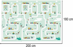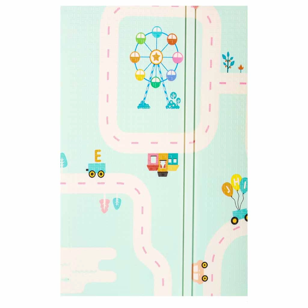 De dubbelzijdige schuimmat met afmetingen 180 × 200 × 1 cm creëert een veilige en comfortabele speelplek voor spelen, de eerste omdraaiingen en kruipen. Het dichte XPE-schuim dempt schokken, beschermt tegen koude vloeren en de antisliptextuur zorgt voor stabiliteit tijdens beweging. De ene zijde met schattige panda’s en de andere met een wegenmotief ondersteunen fantasie en leren.
