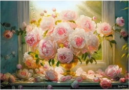 Ontdek de charme van bloemmotieven met de puzzel "Zomerse pioenen". Deze set met 1000 stukjes is ideaal voor een rustige middag, bevordert geduld, concentratie en observatievermogen en dient na voltooiing tevens als mooie decoratie.