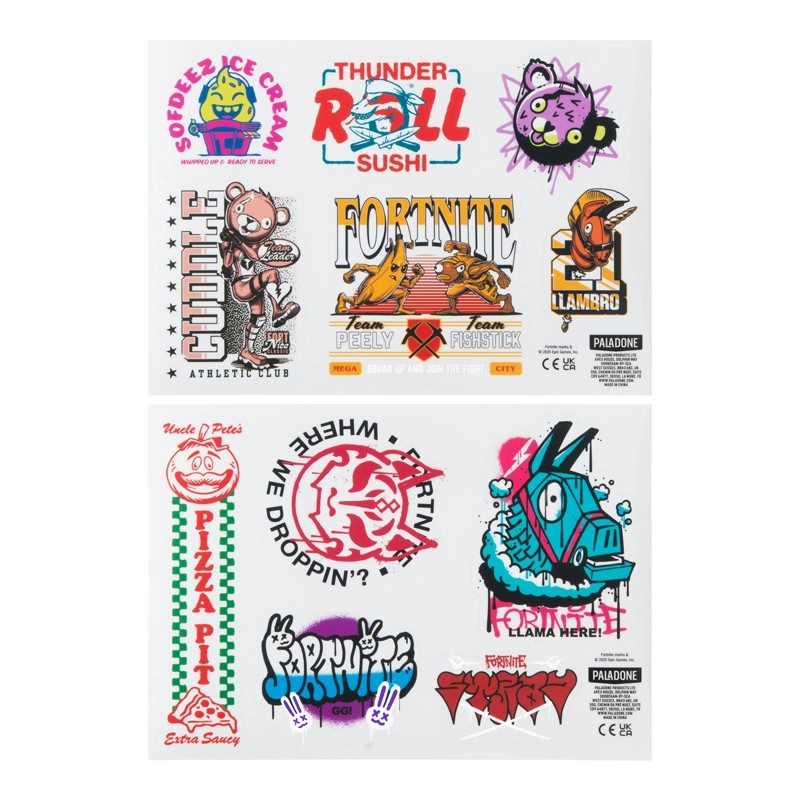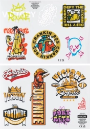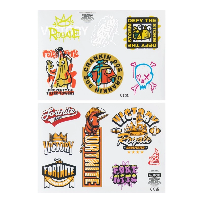 Stijlvolle set stickers met FORTNITE-motieven om je gaminguitrusting te personaliseren. Bevat 4 vellen hoogwaardige technische stickers die je consoles, controllers, laptops en andere apparaten eenvoudig verfraaien.