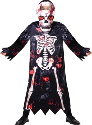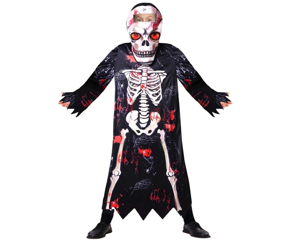 Het kinderkostuum skelet is ideaal voor Halloween, carnaval, schooloptredens en themafeestjes. De zwarte mantel met skeletprint en opvallende “rafelige” zomen zorgt voor een authentieke indruk, terwijl capuchon en masker gemakkelijk aan te trekken zijn en het gezicht betrouwbaar bedekken.