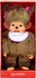 De schattige Monchhichi-pop maakt zowel kinderen als verzamelaars blij. Dit meisje met een roze slabbetje heeft een zacht pluchen lijfje, beweegbare armen en benen en is ideaal als cadeau of voor in de collectie. De 20 cm hoogte is perfect om mee te knuffelen en te spelen.