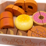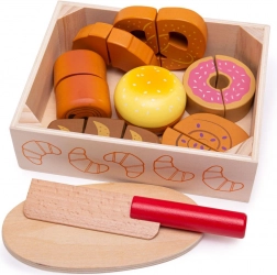 We presenteren een houten snijset voor gebak die is ontworpen voor alle kinderen die de betovering van de keukenwereld willen ontdekken. Deze kleurrijke set bevat verschillende vormen van gebak zoals croissants, donuts en broodjes, die kunnen 2worden gesneden2 met het bijgeleverde houten mes. De speelgoedonderdelen zijn gemaakt van kwalitatief hoogwaardig hout en verbonden met klittenband, wat interactieve en realistische speeltijd mogelijk maakt.