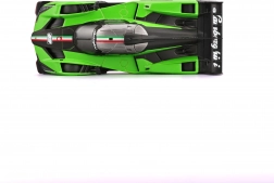 De opvallende vleugel, diffuser en scherpe carrosserielijnen onderstrepen de DNA van de LAMBORGHINI SC63 en zorgen voor een realistische look op schaal 1:43.
