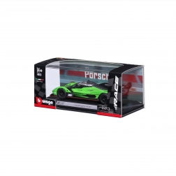 Het model heeft vrij draaiende wielen voor eenvoudig “roll-play”, een opvallende achtervleugel, diffuser en andere aerodynamische elementen die het racekarakter van het origineel benadrukken. De elegante cadeau-/vitrinedoos beschermt het model en presenteert het tegelijkertijd effectief.