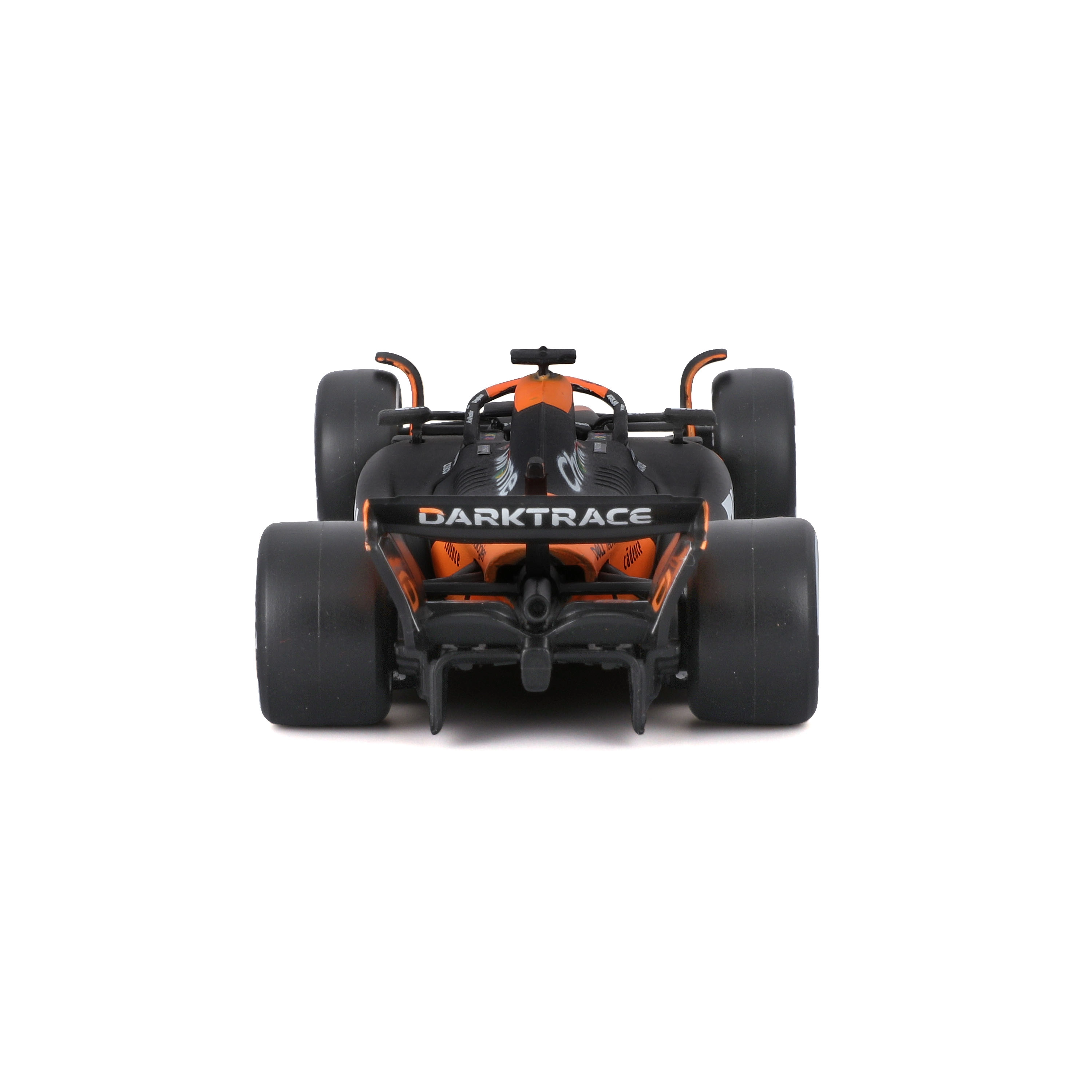 Het herkenbare oranje-zwart, nauwkeurige teamlogo’s en gekleurde wielnaven benadrukken het racekarakter van de echte F1-wagen.