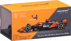 Officieel gelicentieerd model van de McLaren MCL38 2024 op schaal 1:43 van Bburago, dat de actuele bolide van Lando Norris vastlegt met iconische oranje‑zwarte lak en sponsorlogo’s. Dankzij de nauwkeurige proporties, aerodynamische vormen en de gedetailleerde cockpit met coureursfiguur is het ideaal voor in de vitrine of als cadeau voor Formule 1‑fans.