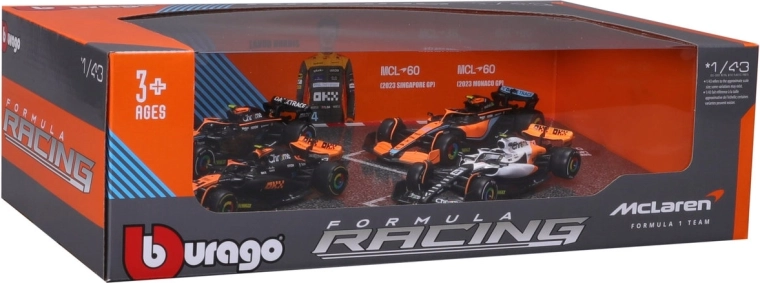 Verzamel racende legendes met de gedetailleerde Bburago-modelset op schaal 1:43. De RACE Formula F1 4-pack brengt auto's van het McLaren F1 Team MCL38 (2024) bestuurd door Lando Norris (#4) en Oscar Piastri (#81). De modellen blinken uit door hoogwaardige afwerking, authentieke kleuren en preciese details, voor het plezier van zowel verzamelaars als jonge F1-fans.